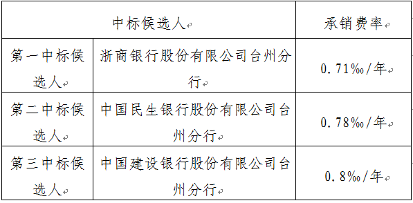 臺州市金融投資集團有限公司超短期融資券發行承銷商招標(非政府采購)項目,經評標委員會評審,結果公示如下:
