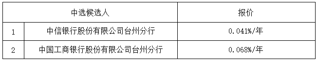臺州市金融投資集團有限公司中期票據(jù)和定向債務(wù)融資工具發(fā)行承銷商招標(非政府采購)(重新招標)項目,經(jīng)評標委員會評審,結(jié)果公示如下: