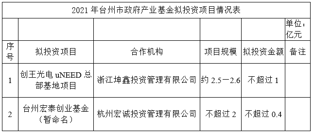 關于臺州市政府產業基金投資項目的公示