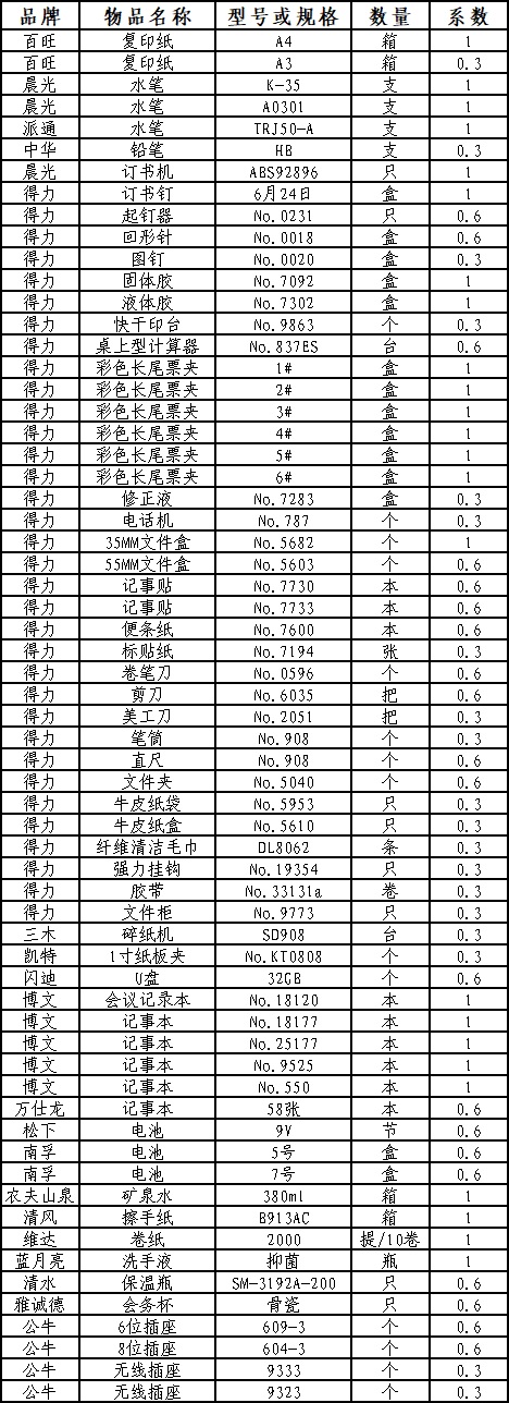 符合采購需求、質量和服務相等的前提下,采用價格比選,所有清單物品單價乘以系數再相加匯總,價低者為成交供應商。