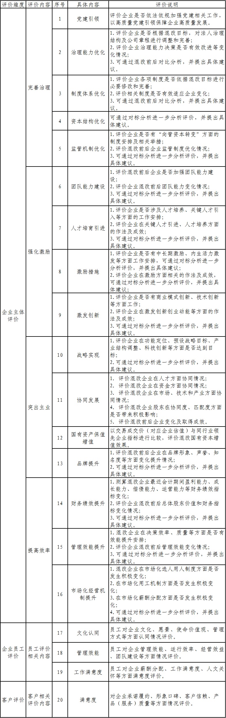 2.評(píng)價(jià)重點(diǎn)。評(píng)價(jià)重點(diǎn)圍繞主體評(píng)價(jià)、員工評(píng)價(jià)、客戶評(píng)價(jià)三個(gè)維度開展,詳見后評(píng)價(jià)主要參考指標(biāo)。